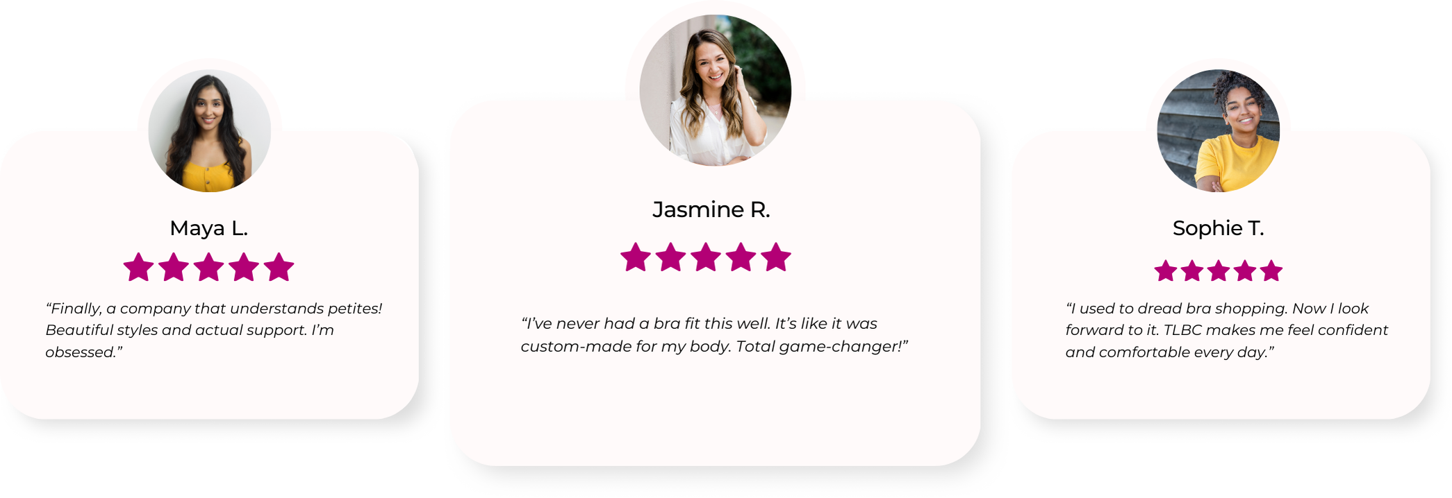 The Little Bra Company® bras are different because we design our bras especially for petite and smaller-framed women. Our scale is based on a petite body type, so our proportion is based on a smaller figure. Just like petite-sized clothing fit a petite woman better because shoulders, waists, and inseams are proportionately slimmer, narrower and shorter, TLBC’s bras fit similarly. ALL details are scaled down to better fit and flatter your petite frame.
